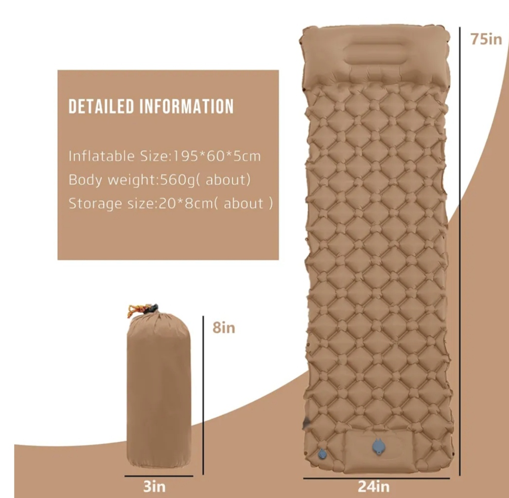 زیرانداز تشک بادی فوق سبک با پمپ پایی داخلی